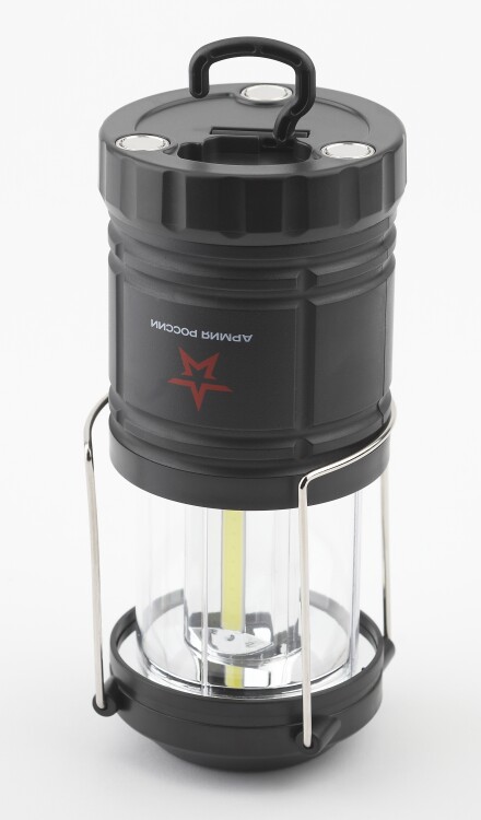 ЭРА Армия России ЗАРЯ - кемпинговый светодиодный фонарь-трансформер, изготовленный из экологичного и сверхлёгкого пластика. Три в одном: 1. универсальный фонарь с ручками - удобно освещать дорогу; 2. устойчивый светильник, который можно поставить на столе для получения света и создания уютной атмосферы на привале; 3. светильник по типу уличного фонаря - подвешивается к разным типам поверхностей при помощи магнита или крючка.Светодиодная часть за считанные секунды "прячется" в корпус. Это защищает осветительные элементы от ударов и экономит место в рюкзаке. Яркий и плотный свет обеспечивают светодиоды СОВ ("мультикристалл на плате"). Технология, широко применяемая в промышленном освещении, теперь адаптирована для универсальных целей. ЭРА получила уникальный по качеству свет, который при своей повышенной яркости является комфортным для глаз. Дальность освещения - 13 метров, а одного заряда аккумулятора будет достаточно в тёмное время суток - 9 часов непрерывной работы. Простой доступный формат питания фонаря - 3 пальчиковые батарейки. Серия фонарей ЭРА Армия России - совместный проект отечественного бренда ЭРА и АО "Военторг", действующего на основании лицензии Министерства обороны РФ.