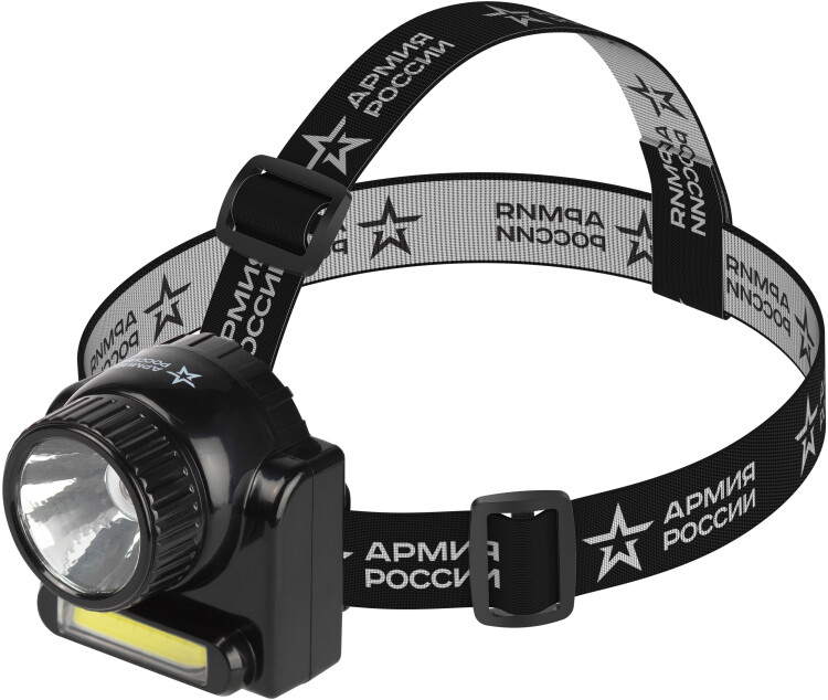 ЭРА Армия России Гранит - мощный налобный светодиодный фонарь в подарочной коробке. Два режима - ближний свет на мультикристальных светодиодах СОВ и дальний свет на классических LED. В комплекте - удобный шнур для зарядки аккумулятора от электросети и мягкий регулируемый ремешок с фирменной звездой "Армия России".Этот фонарь - часть серии ЭРА Армия России, которая является совместным проектом отечественного бренда ЭРА и АО "Военторг", действующего на основании лицензии Министерства обороны РФ. Мощный аккумулятор (800 мАч) непрерывно работает без подзарядки 25 часов. Режимы переключаются акцентированной красной кнопкой. Пользователь может выбрать либо дальний направленный свет (длина луча - 36 метров.), либо ближнее заливающее освещение, особая яркость которого достигается использованием технологии СОВ ("мультикристалл на плате") - промышленный свет, адаптированный для универсальных целей. Название фонаря - отражение одного из известнейших достижений российской военной техники. Гранит - это сверхзвуковая противокорабельная крылатая ракета с повышенной дальностью действия.