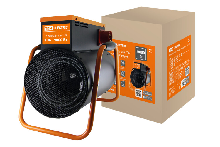 Применение:Обогрев строящихся объектов и помещений в процессе ремонта.Обогрев производственных цехов и мастерских.Обогрев ангаров и складов.Обогрев гаражей, павильонов и подсобных помещений. Комплектация:Пушки мощностью 2 кВт (арт. SQ2520-0001) и 3 кВт (арт. SQ2520-0002) поставляются в комплекте со шнуром питания длиной 1,2 м, оснащенным вилкой на 16 АПушка мощностью 5 кВт (арт. SQ2520-0003) поставляется в комплекте со шнуром питания длиной 1,2 м.Преимущества:Нагревательный элемент высококачественный ТЭН из нержавеющей стали.Увеличенный выход тепла и быстрый прогрев помещения благодаря форме ТЭНа с большой площадью теплоотдачи.Высокая интенсивность и оптимальная направленность воздушного потока.Регулируемый угол наклона.Вентилятор с мощным двигателем.Термопредохранитель для защиты от перегрева.Заземление корпуса.Компактные размеры и небольшая массаВнутренний кожух для предотвращения чрезмерного нагрева корпуса.3 режима работы (режим вентиляции, режим работы на половине рабочей мощности, режим работы на полной рабочей мощности).Универсальная опора с ручкой. Назначение:Основной и дополнительный обогрев помещений. 0: