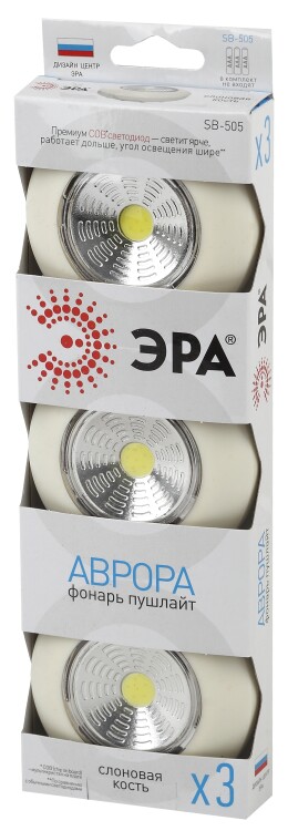 *SB-505 Фонарь ЭРА пушлайт "Аврора" [COB, 3xAAA, слон. кость, 3шт в кор] | Б0031044