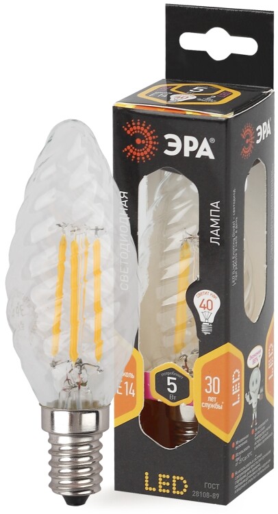 Лампочка светодиодная ЭРА F-LED BTW-5W-827-E14 Е14 / E14 5Вт филамент свеча витая матовая теплый белый свет (кр. 1шт)