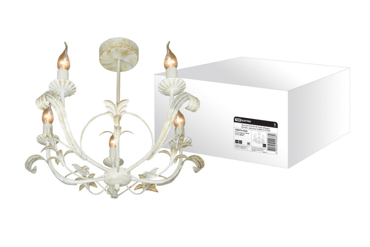 Материалы:Арматура:МеталлПлафоны:СтеклоПатроны:Пластик Преимущества:Классический дизайн и кованые элементы.Патинированное покрытие белый с золотом, черный с золотом, черный с серебром нанесены вручную.Люстры поставляются в сборе. Необходимо установить только плафоны.Назначение:Предназначены для интерьерного освещения. Упаковка:Коробка из гофрокартона Конструкция:Потолочное крепление планка.Патроны с цоколем Е14.