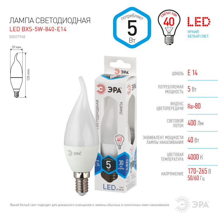 Эта светодиодная лампа ЭРА Серии Стандарт - современный, качественный и доступный источник света. Позволяет экономить до 90% электроэнергии по сравнению с лампой накаливания с аналогичным световым потоком. Светит ярким белым светом, который максимально приближен к естественному дневному. Идеальна для ежедневного применения в быту. Мгновенное включение. Ровное освещение. Можно ис пользовать как с люстрами, так и со светильниками, в том числе настольными и бра.