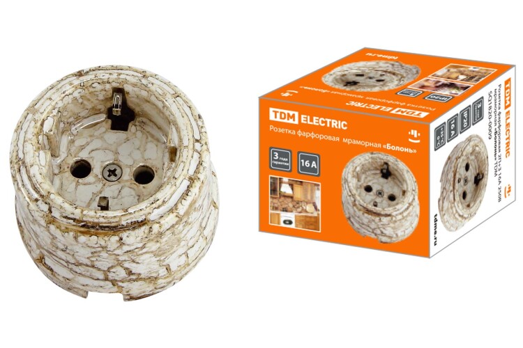 Розетка фарфоровая 2П+З 16А 250В мраморная «Болонь» TDM (кр.1шт)