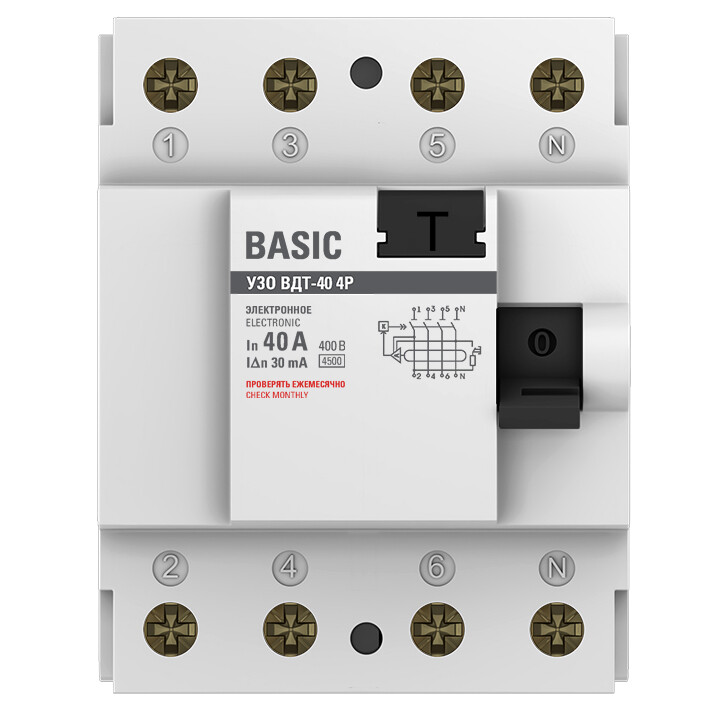 Устройство защитного отключения УЗО ВДТ-40 4P 40А/ 30мА (электронное) Basic (кр. 1шт)