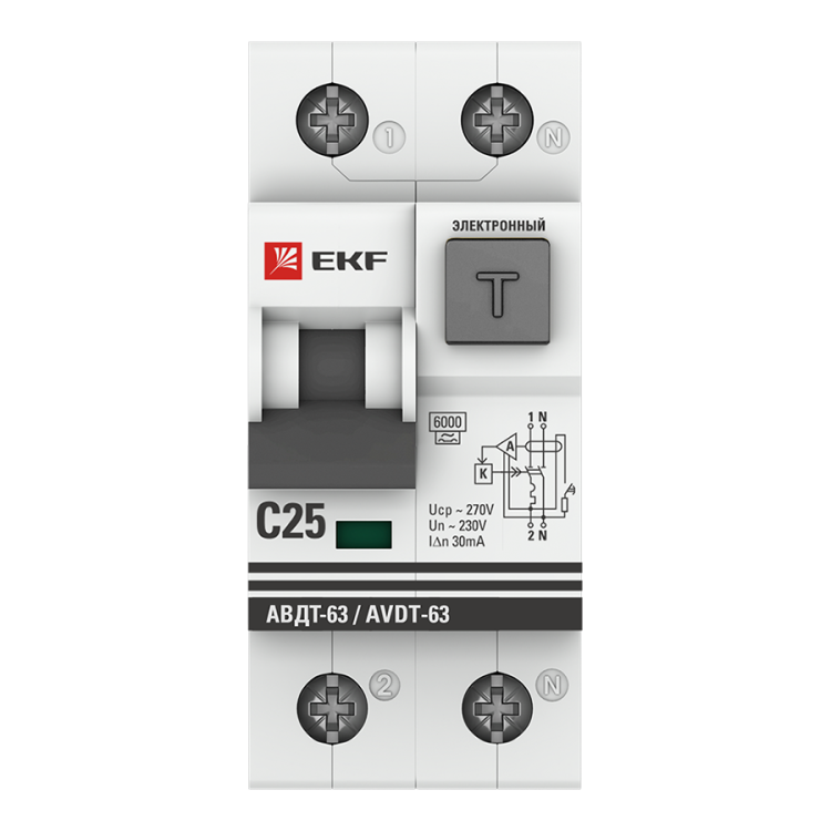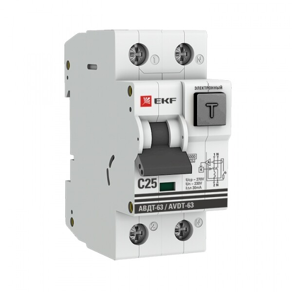 Автоматический выключатель дифференциального тока АВДТ-63 EKF PROxima представляет аппарат, сочетающий функции автоматического выключателя с электромеханическим или электронным УЗО. При обнаружении автоматическим выключателем в защищаемом участке сети тока утечки (повреждения) на землю или сверхтока (тока перегрузки или короткого замыкания) происходит срабатывание устройства, приводящее к отключению защищаемой сети. Возможна коммутация алюминиевым и медным проводником. Автоматический выключатель дифференциального тока малогабаритный АВДТ-63М EKF PROxima представляет аппарат, сочетающий функции автоматического выключателя с электронным УЗО типа АС в компактном корпусе шириной один модуль. При обнаружении автоматическим выключателем на защищаемом участке сети тока утечки (повреждения) на землю или сверхтока (тока перегрузки или короткого замыкания) происходит срабатывание устройства, приводящее к отключению защищаемой сети. Особое отличие дифференциальных автоматических выключателей EKF с электронным УЗО – в наличии блока защиты от перенапряжения. Возможна коммутация алюминиевым и медным проводом.
