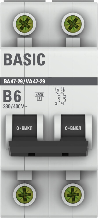 Автоматический выключатель 2P 6А (B) 4,5кА ВА 47-29 Basic (кр. 1шт)