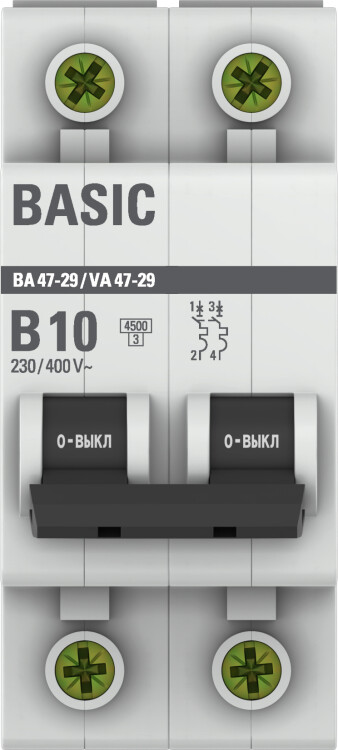 Автоматический выключатель 2P 10А (B) 4,5кА ВА 47-29 Basic (кр. 1шт)