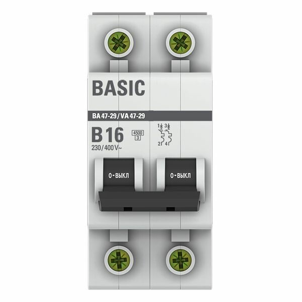 Автоматический выключатель 2P 16А (B) 4,5кА ВА 47-29 Basic (кр. 1шт)