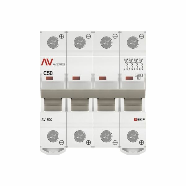 Выключатель автоматический AV-6 DC 4P 50A (C) 6kA EKF AVERES (кр. 30 шт)