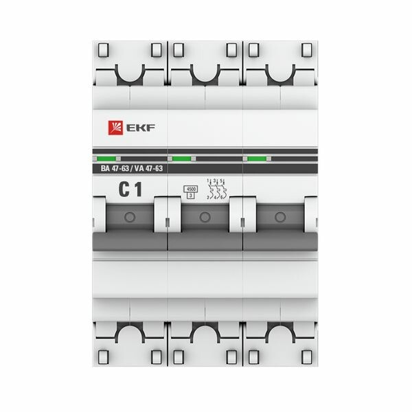 Автоматические выключатели ВА 47-63 4,5 кА EKF PROxima являются механическими коммутационными аппаратами и соответствуют ГОСТ Р50345-2010. Особенностью данной серии выключателей является усовершенствованная конструкция. В выключателях имеются пластиковые крышки, закрывающие доступ к винтовому зажиму и служащие для опломбирования выключателей, что исключает несанкционированный доступ к проводникам. Корпус выключателей усилен дополнительными заклепками для устранения эффекта расхождения корпуса. Выключатели оборудованы удобной ручкой управления, обеспечивающей надежное оперирование изделиями. На лицевой панели выключателей имеется цветовой индикатор состояния. Конструкция установочного зажима обеспечивает свободную установку выключателя на DIN-рейку.