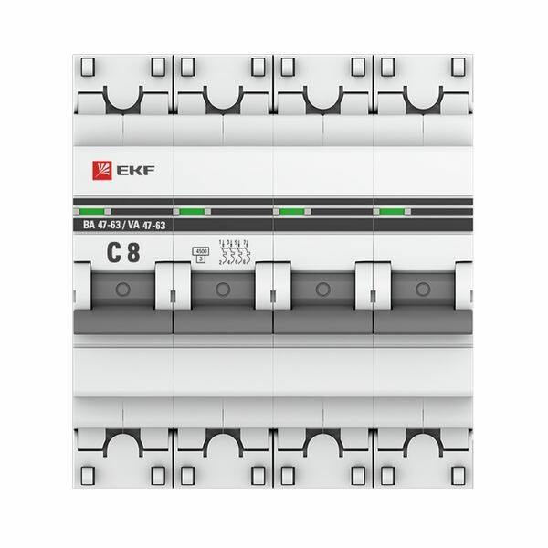 Авт. выкл. 4P 8А (C) 4,5kA ВА 47-63N EKF PROxima (замена на M634408C)