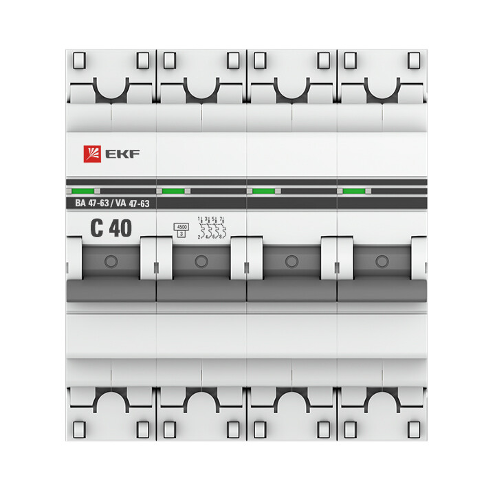Автоматические выключатели ВА 47-63 4,5 кА EKF PROxima являются механическими коммутационными аппаратами и соответствуют ГОСТ Р50345-2010. Особенностью данной серии выключателей является усовершенствованная конструкция. В выключателях имеются пластиковые крышки, закрывающие доступ к винтовому зажиму и служащие для опломбирования выключателей, что исключает несанкционированный доступ к проводникам. Корпус выключателей усилен дополнительными заклепками для устранения эффекта расхождения корпуса. Выключатели оборудованы удобной ручкой управления, обеспечивающей надежное оперирование изделиями. На лицевой панели выключателей имеется цветовой индикатор состояния. Конструкция установочного зажима обеспечивает свободную установку выключателя на DIN-рейку.