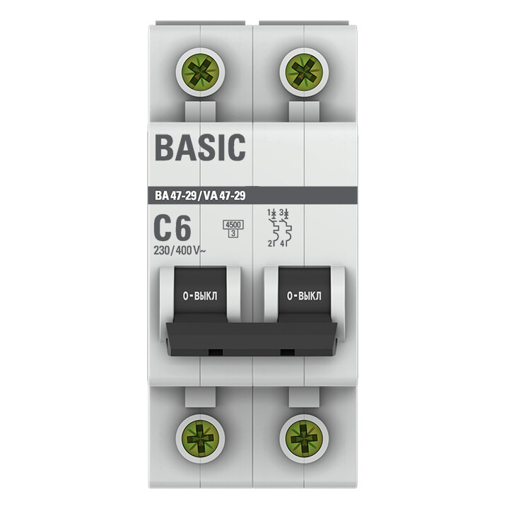 Автоматический выключатель 2P 6А (C) 4,5кА ВА 47-29 Basic (кр. 1шт)