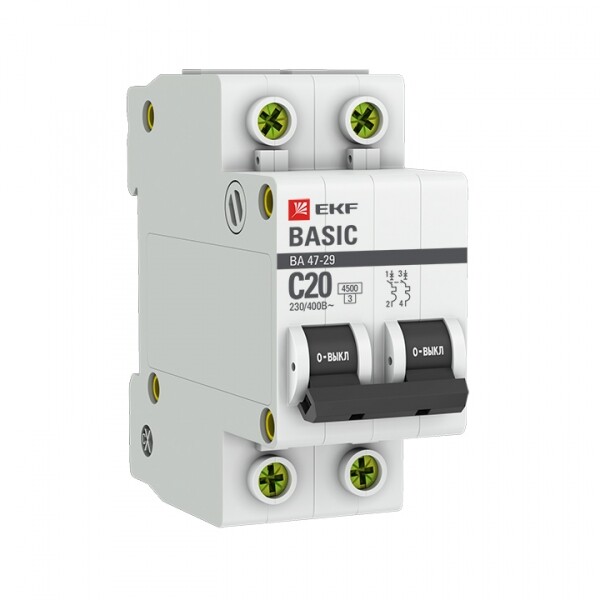 Автоматический выключатель 2P 20А (C) 4,5кА ВА 47-29 Basic (кр. 1шт)