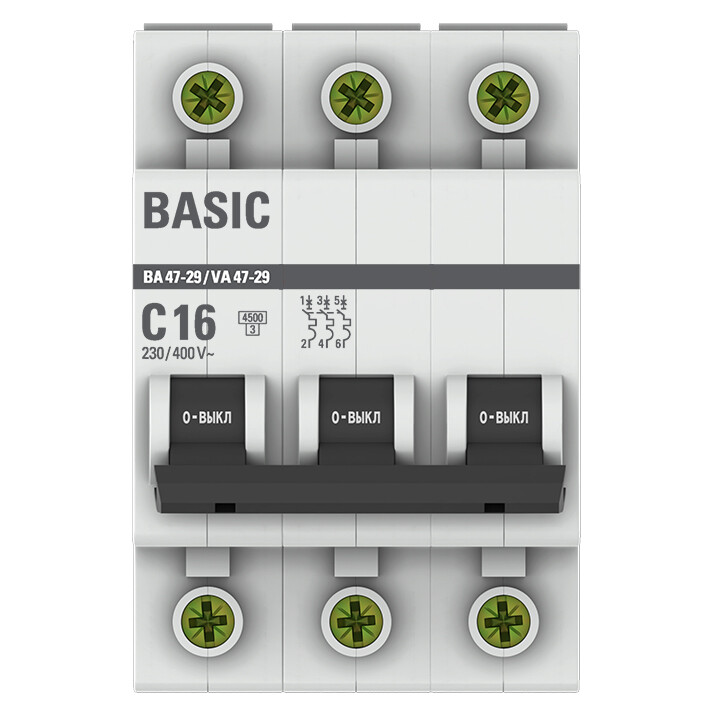 Автоматический выключатель 3P 16А (C) 4,5кА ВА 47-29 Basic (кр. 1шт)
