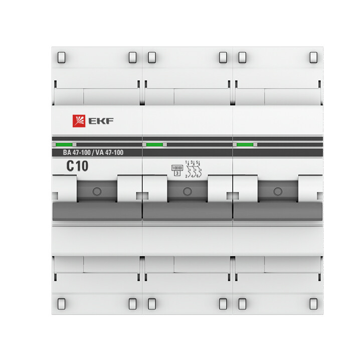 Автоматический выключатель 3P 10А (C) 10kA ВА 47-100 EKF PROxima (кр. 1шт)