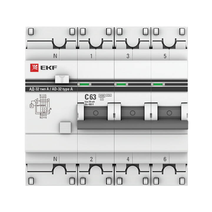 Дифференциальный автоматический выключатель АД-32 EKF PROxima представляет собой аппарат, сочетающий функции автоматического выключателя с устройством защитного отключения. При обнаружении автоматическим выключателем в защищаемом участке сети тока утечки (повреждения) на землю или сверхтока (тока перегрузки или короткого замыкания) происходит срабатывание устройства, приводящее к отключению защищаемой сети. Ассортимент АД-32 дополнен дифавтоматами АД-32 тип А и АД-32 селективными.
