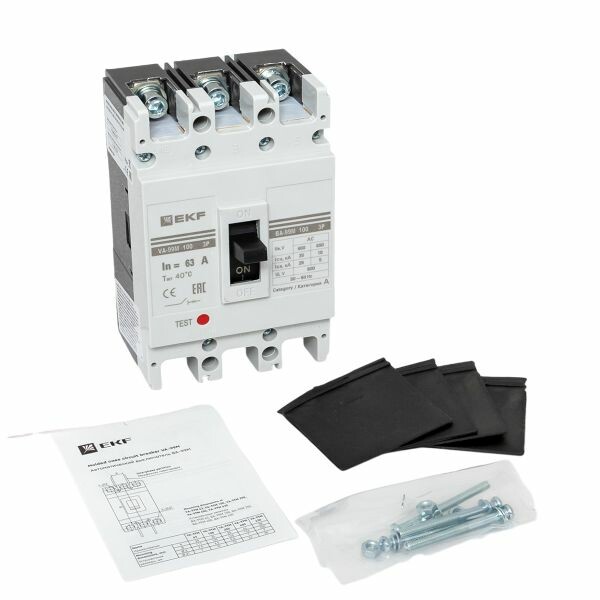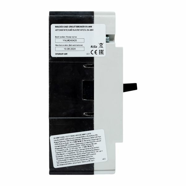 Выключатель ВА-99М выполнен в виде моноблока и состоит из основания и крышки с фальшпанелью, в которой имеется окно для рукоятки управления и толкатель кнопки «Тест» - проверки механизма отключения выключателя. Основание выполнено из термостойкой пластмассы, не поддерживающей горение и являющейся несущей конструкцией для присоединительных зажимов, неподвижных и подвижных контактов с системой дугогашения, механизма управления, блока защиты от сверхтоков. Крышка закрывает все подвижные элементы механизма управления и внутренние токоведущие части.