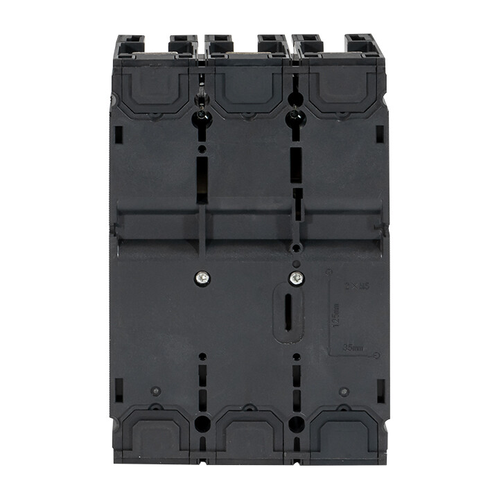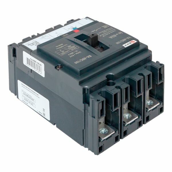 Выключатель ВА-99С выполнен в виде моноблока и состоит из основания и крышки с фальш-панелью, в которой имеется окно для рукоятки управления и толкатель кнопки «Тест» – для проверки механизма отключения выключателя.Основание выполнено из термостойкой пластмассы, не поддерживающей горение и являющейся несущей конструкцией для присоединительных зажимов, блок ротоактивных контактов с двумя дугогасительными камерами представляет собой жесткую сборку в отдельном корпусе, механизма управления, блока защиты от сверхтоков и перегрузки (расцепителя). Крышка закрывает все подвижные элементы механизма управления и внутренние токоведущие части.