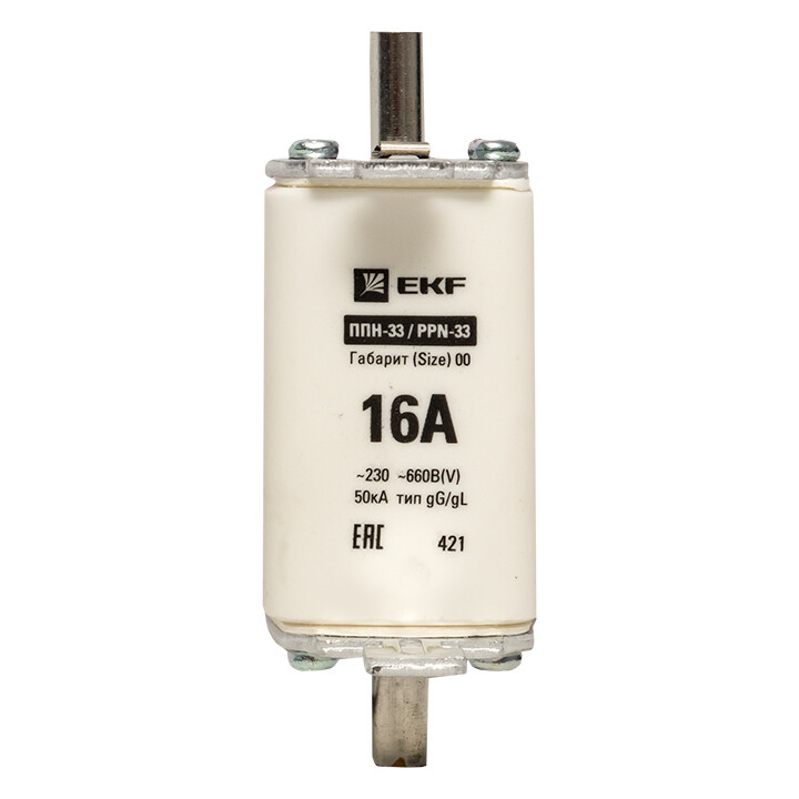 Плавкая вставка ППН-33 160/ 6А габарит 00 EKF . Предохранители плавкие ППН EKF, укомплектованные плавкими вставками типа gG/gL, предназначаются для защиты кабельных линий и промышленных электроустановок от токов перегрузки и короткого замыкания. Предохранители применяются в электрических сетях переменного тока частотой 50 Гц с напряжением до 660В. Применяются для крепления в распределительных и вводно-распределительных устройствах. Предохранители плавкие ППН могут устанавливаться в основание с держателем, а также в специально предназначенные рубильники. В комплект поставки предохранителей плавких ППН основание с держателем не входит и приобретается отдельно.