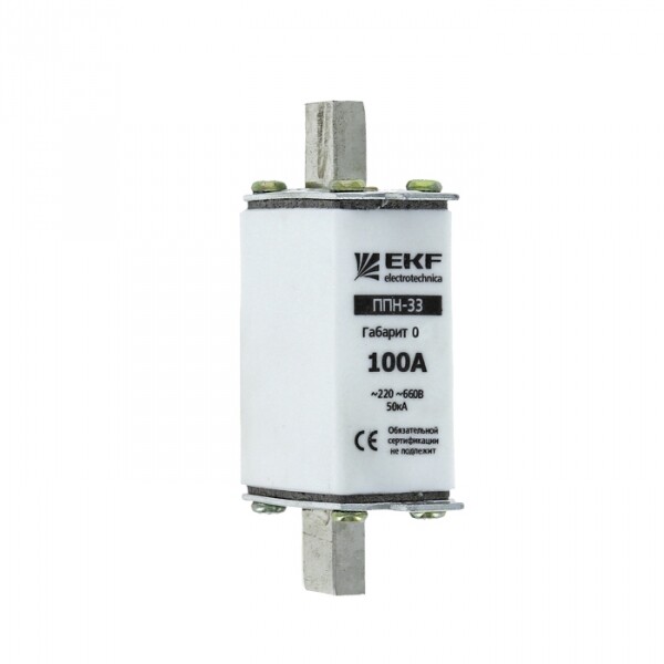 Плавкая вставка ППН-33 160/125А габарит 0 EKF. Предохранители плавкие ППН EKF, укомплектованные плавкими вставками типа gG/gL, предназначаются для защиты кабельных линий и промышленных электроустановок от токов перегрузки и короткого замыкания. Предохранители применяются в электрических сетях переменного тока частотой 50 Гц с напряжением до 660В. Применяются для крепления в распределительных и вводно-распределительных устройствах. Предохранители плавкие ППН могут устанавливаться в основание с держателем, а также в специально предназначенные рубильники. В комплект поставки предохранителей плавких ППН основание с держателем не входит и приобретается отдельно.
