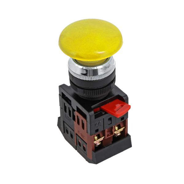 Кнопки типа Грибок применяются в электрических цепях переменного тока частотой 50/60 Гц с напряжением до 660 В и постоянным напряжением до 400 В. Исполнение такого типа ( активная часть выступает) позволяет простым нажатием быстро подать управляющий сигнал на оборудование. Включение кнопки облегчается за счет большой площади поверхности нажатия.