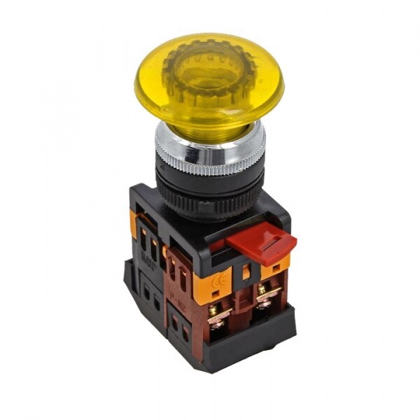 Кнопки типа Грибок применяются в электрических цепях переменного тока частотой 50/60 Гц с напряжением до 660 В и постоянным напряжением до 400 В. Исполнение такого типа ( активная часть выступает) позволяет простым нажатием быстро подать управляющий сигнал на оборудование. Включение кнопки облегчается за счет большой площади поверхности нажатия.