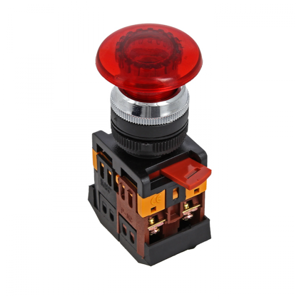 Кнопки типа Грибок применяются в электрических цепях переменного тока частотой 50/60 Гц с напряжением до 660 В и постоянным напряжением до 400 В. Исполнение такого типа ( активная часть выступает) позволяет простым нажатием быстро подать управляющий сигнал на оборудование. Включение кнопки облегчается за счет большой площади поверхности нажатия.
