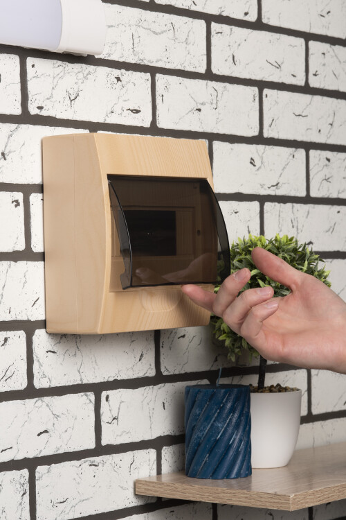 Щиты распределительные пластиковые ЩРн-П, ЩРв-П EKF PROxima предназначены для установки модульной аппаратуры: автоматических выключателей, УЗО, таймеров, устройств управления и т.д. Используются для электромонтажа в жилых, административных, торговых помещениях. Вертикальное открывание дверцы позволяет устанавливать бокс независимо от положения соседних стен. Электрощиты изготовлены из прочного ABS-пластика. Текстура дерева даёт возможность маскировки электротехнических щитов и соединений в деревянных дома.