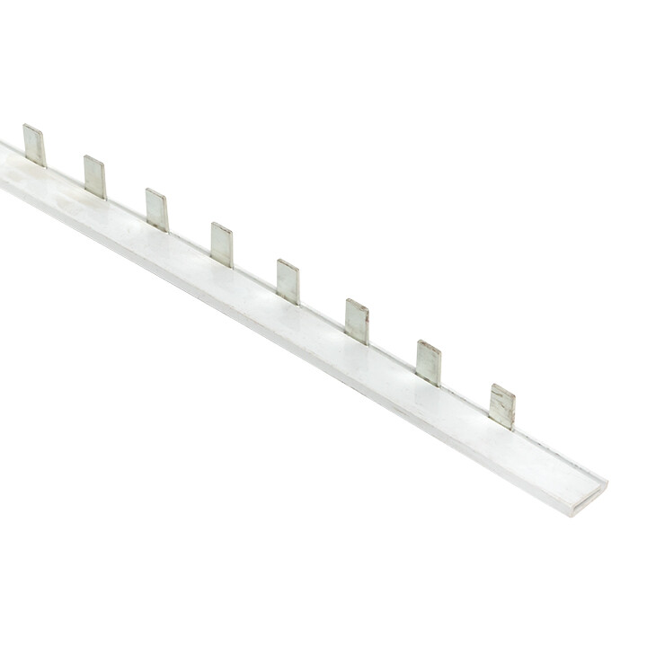 Шины соединительные представляют собой пластины, выполненные из меди (шины на 100 А – из луженой меди), закрепленные в корпусе из диэлектрического материала, не поддерживающего горение, и выпускаются стандартной длиной 1 метр. Шины соединительные делятся на два типа - FORK («вилка») и PIN («гребенка») на номинальные токи 63 и 100 А. Могут быть выполнены в одно- двух- трех- и четырехполюсном исполнений.