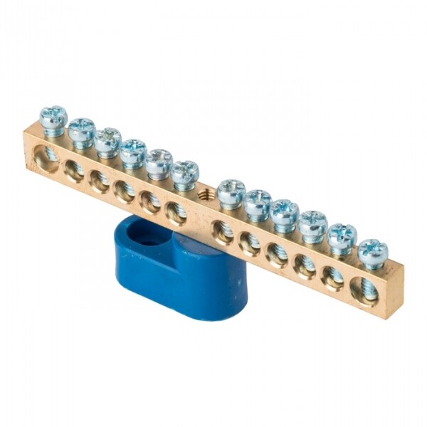 Шина "0" N (6х9мм) 12 отверстий латунь синий угловой изолятор EKF PROxima (кр. 500 шт)