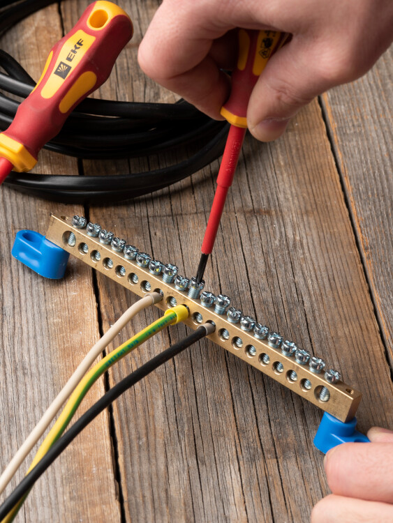 Шины предназначены для присоединения нулевых проводников (шина N) и заземления (шина PE). Шины выполнены из латуни и никелированной латуни. Нулевая шина устанавливается на изоляторе.