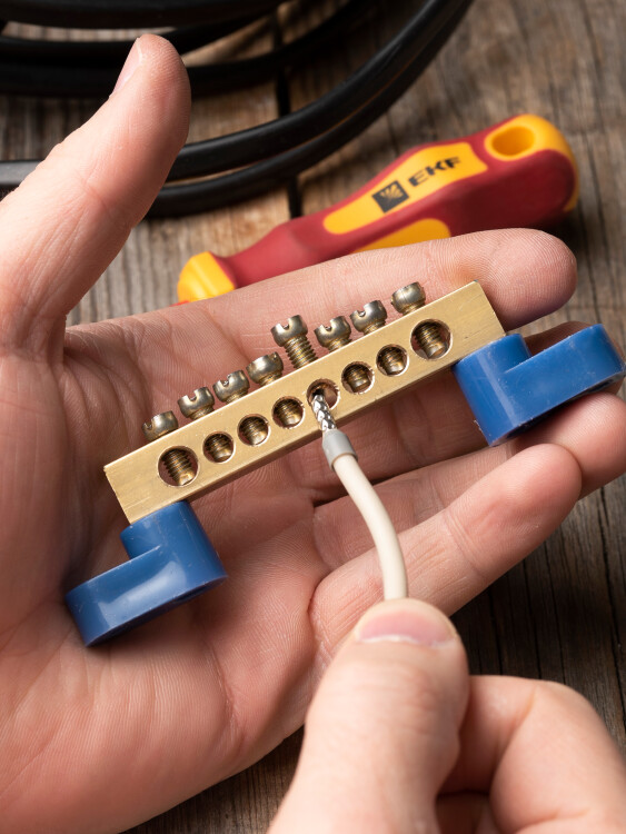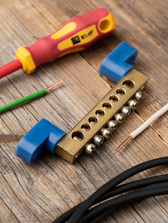 Шины предназначены для присоединения нулевых проводников (шина N) и заземления (шина PE). Шины выполнены из латуни и никелированной латуни. Нулевая шина устанавливается на изоляторе.