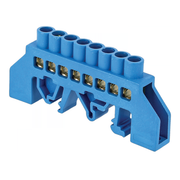 Шина "0" N (8х12мм) 8 отверстий латунь синий нейлоновый корпус комбинированный EKF PROxima (кр. 20шт)