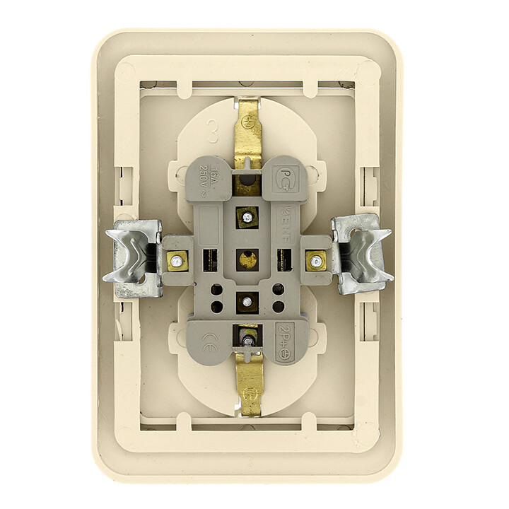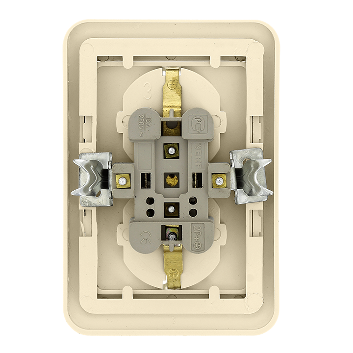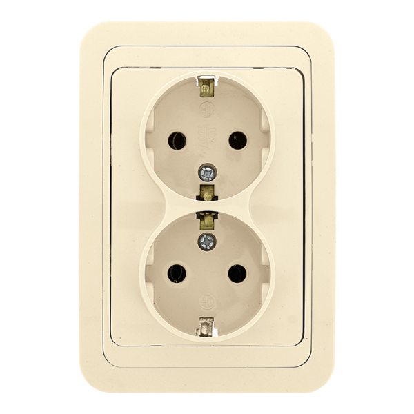 Лондон Розетка 2-местная с заземлением 16А бежевая EKF PROxima(кр.1шт)