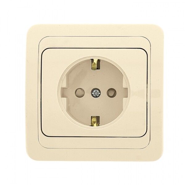 Лондон Розетка 1-местная с заземлением 16А бежевая с защ. штор. EKF PROxima(кр.1шт)
