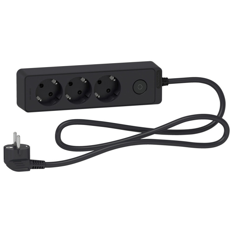 UNICA EXTEND удлинитель 3 розетки 2К+З, кабель 1,5м, ЧЁРНЫЙ