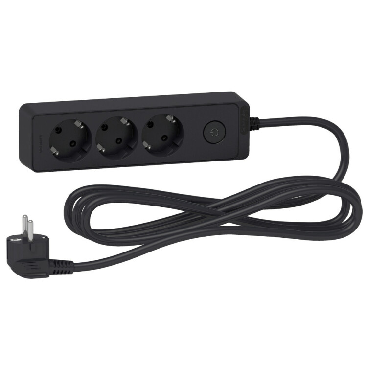 UNICA EXTEND удлинитель 3 розетки 2К+З, кабель 3м, ЧЁРНЫЙ