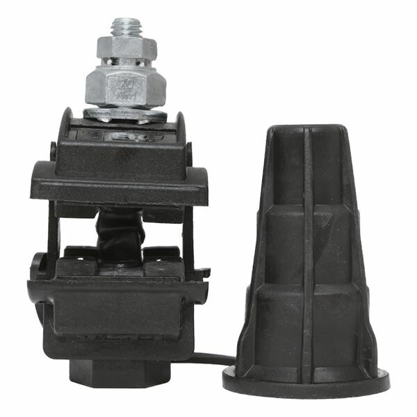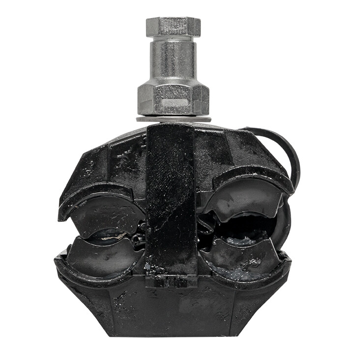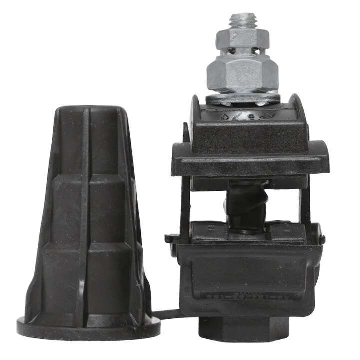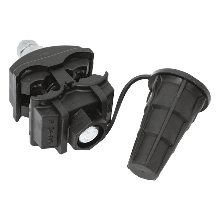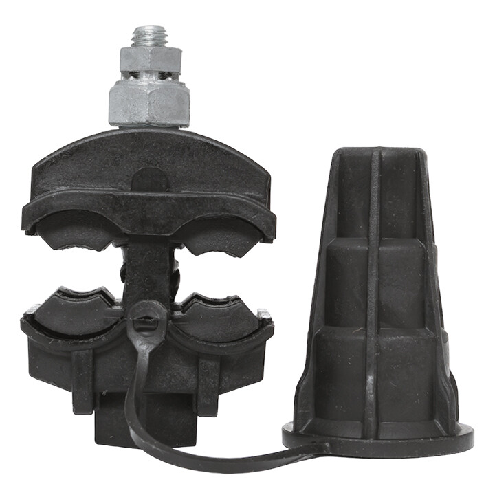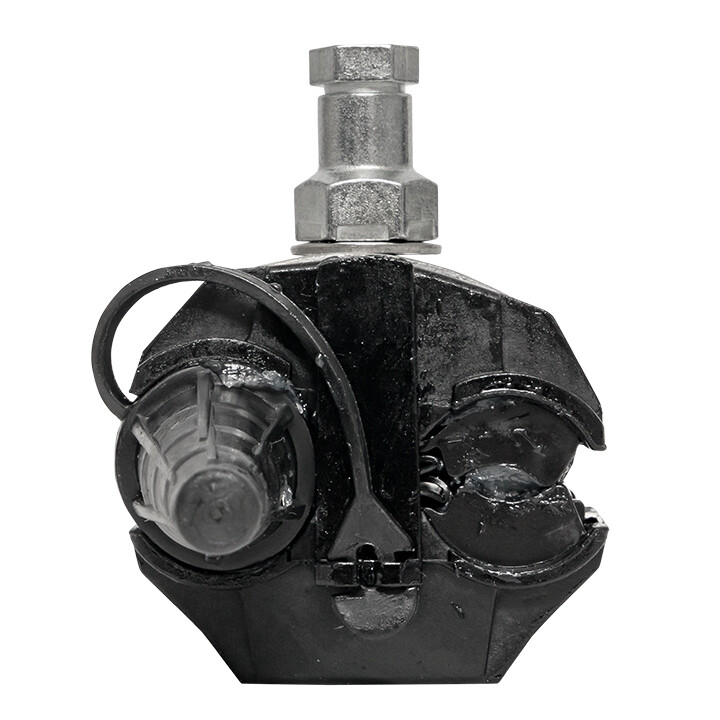 Зажим типа p-5x-95 предназначен для герметичного электрического соединения ответвительной линии СИП с магистралью. Контакт с изолированным проводом обеспечивается прокалыванием изоляции. При достижении момента, необходимого для создания надежного электрического контакта проводов, происходит срыв головки болта. Контактные пластины изготовлены из алюминиевого сплава. На прокалывающие элементы нанесена контактная смазка. Болт изолирован от контактных деталей зажима. Зажим устойчив к ультрафиолетовому и солнечному излучению, высоким и низким температурам, коррозии и агрессивным атмосферным воздействиям.