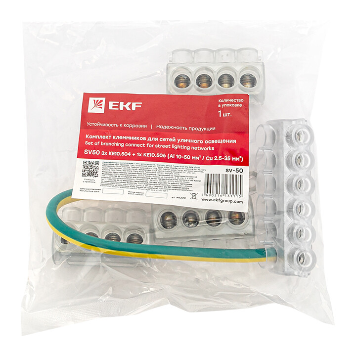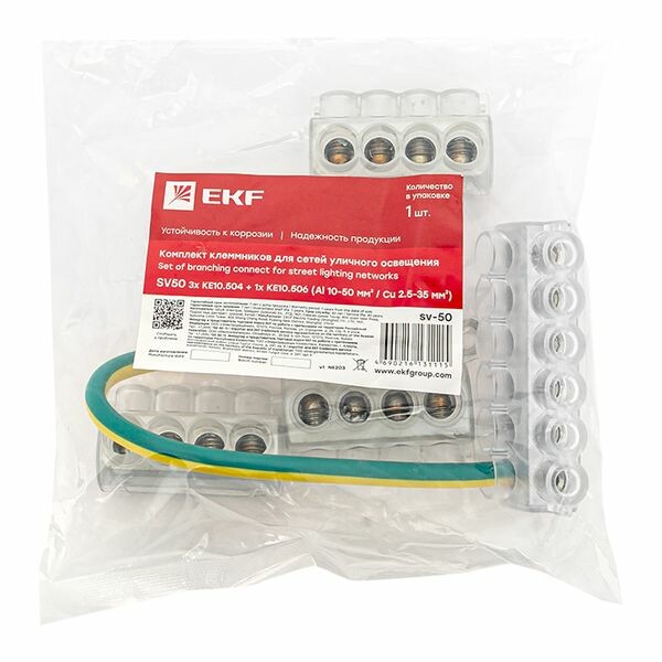Набор клеммников уличного освещения типа sv-50 предназначен для соединения и разветвления 4-х или 6-и жильных кабелей внутри стоек или щитов опор и мачт уличного освещения. Подходит для медных и алюминиевых проводов. При подключении проводов необходимо зачистить концы от изоляции. Контакт с зачищенным проводом обеспечивается прижимными винтами с внутренним шестигранником. На проводящие части нанесена контактная смазка. Корпус клеммника неразборный.