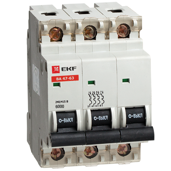 Автоматический выключатель ВА 47-63 6кА, 3P 20А (C) EKF(кр.1шт)