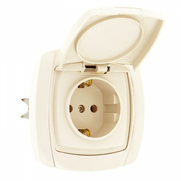 Париж Розетка 1-местная с заземлением с крышкой 16А бежевая EKF Simple(кр.1шт)