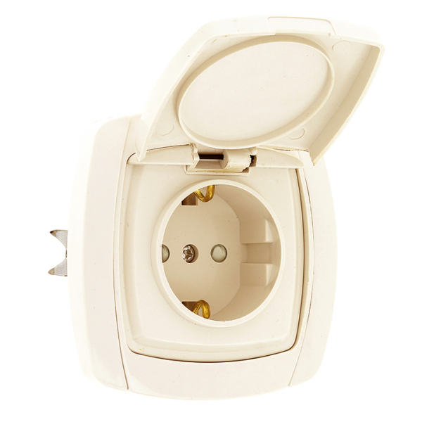 Париж Розетка 1-местная с заземлением с крышкой 16А бежевая с защ. штор. EKF Simple(кр.1шт)