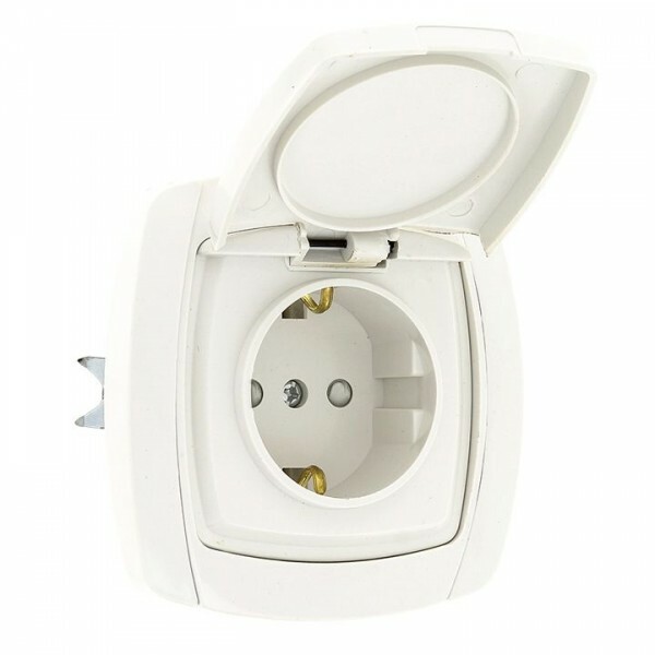 Париж Розетка 1-местная с заземлением с крышкой 16А белая с защ. штор. EKF Simple(кр.1шт)