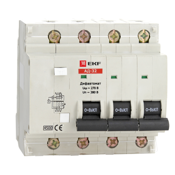 Дифференциальный автомат АД-32 4P 16А/100мА (характеристика C, тип AC) 4,5кА EKF(кр.1шт)