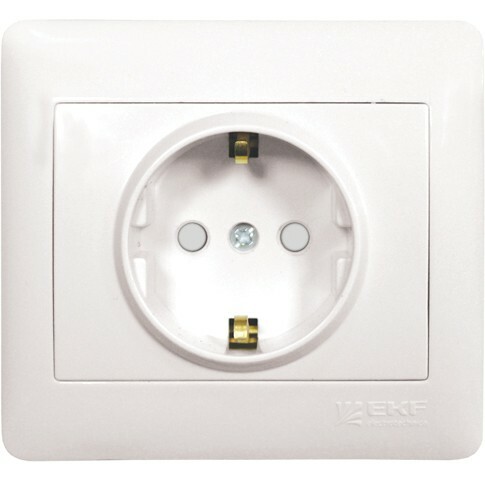 София Розетка 1-местная с заземлением, 16А, с защитной шторкой, белая EKF Simple(кр.1шт)