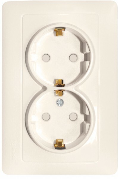 София Розетка 2-местная с заземлением, 16А, с защитной шторкой, бежевая EKF Simple(кр.1шт)