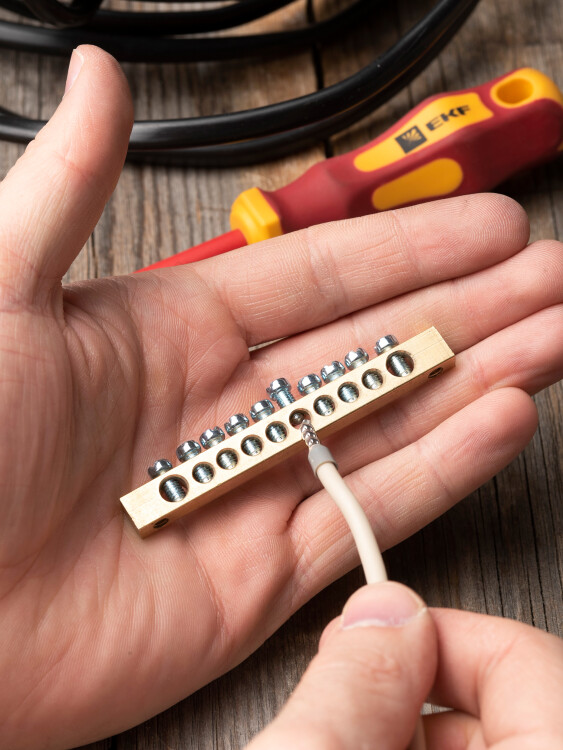 Шины предназначены для присоединения нулевых проводников (шина N) и заземления (шина PE). Шины выполнены из латуни и никелированной латуни. Нулевая шина устанавливается на изоляторе.