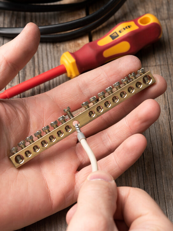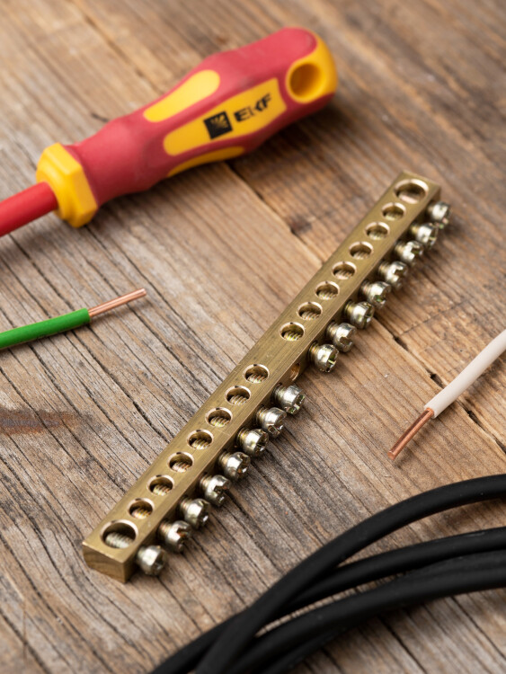 Шины предназначены для присоединения нулевых проводников (шина N) и заземления (шина PE). Шины выполнены из латуни и никелированной латуни. Нулевая шина устанавливается на изоляторе.